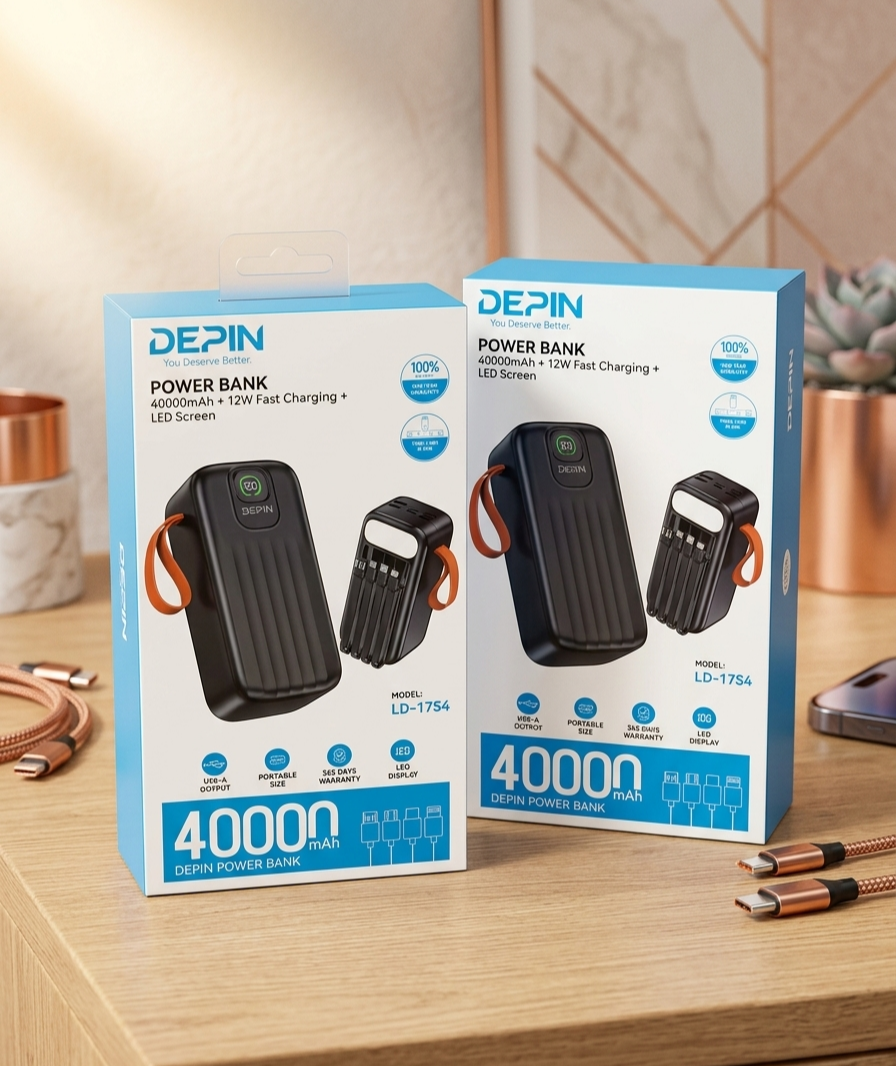 🔋 Power Bank 40000mAh Haute Capacité – DEPIN (Modèle LD-17S4)