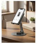 Support Bureau Métal Réglable — Smartphone et Tablette, Angle Ajustable, Stable et Solide