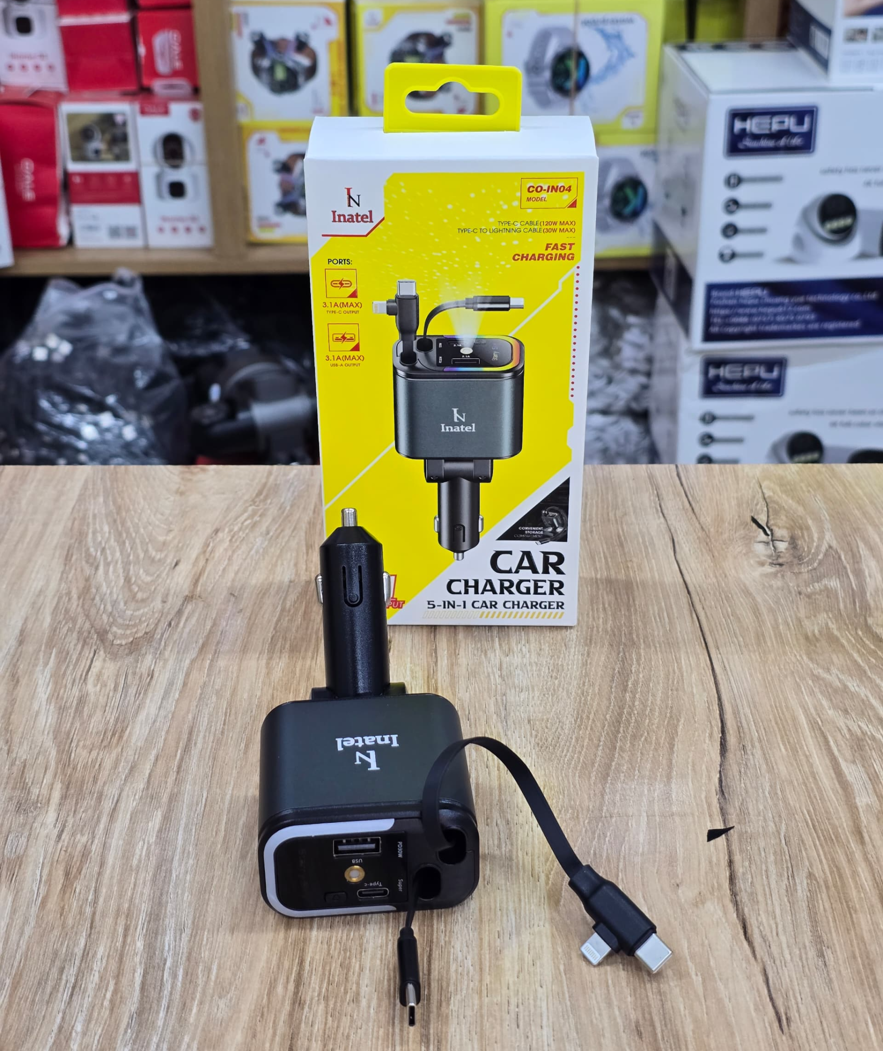 Chargeur de Voiture Inatel 5-en-1 – La Puissance Ultime pour vos Trajets