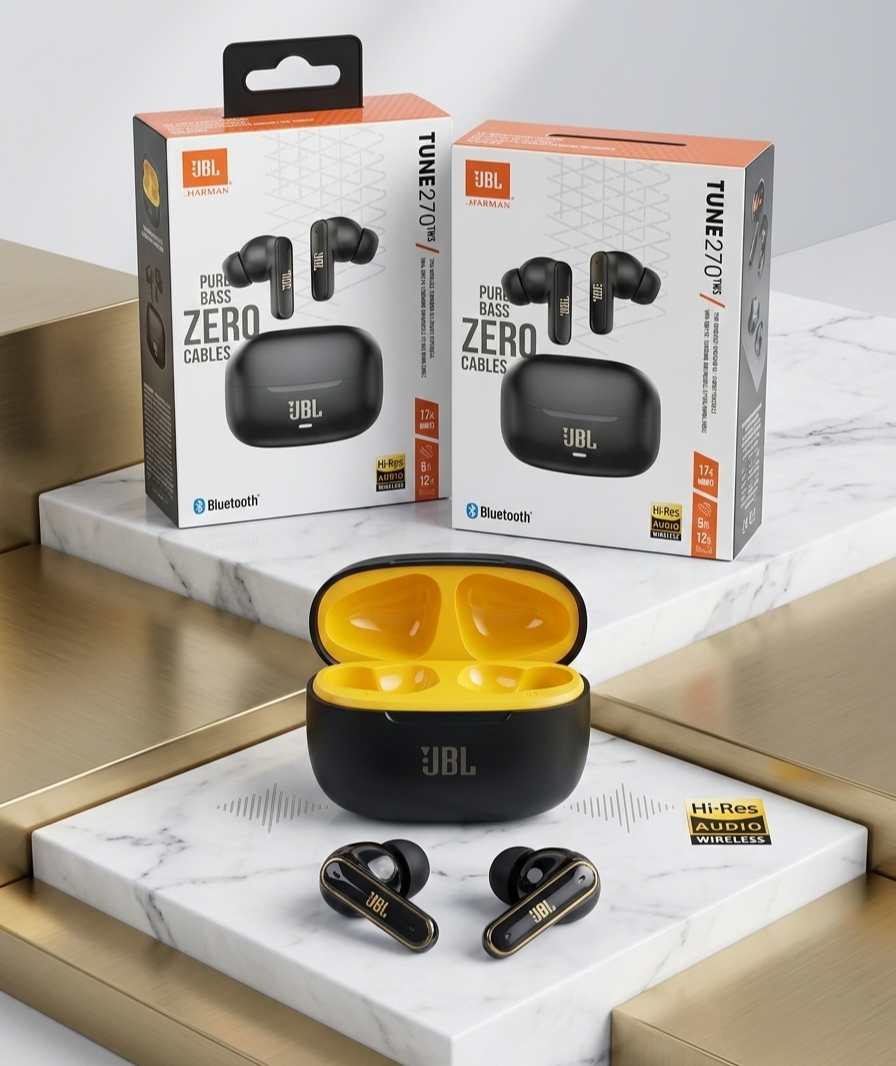 Les écouteurs JBL BY HARMAN TUNE 270 TWS sont conçus pour une immersion sonore totale. Grâce à la technologie PURE BASS ZERO CABLES, chaque beat est puissant, tandis que la certification Hi-Res AUDIO WIRELESS garantit une fidélité sonore exceptionnelle. Leur connexion Bluetooth ultra-rapide et stable élimine les coupures pour une expérience d'écoute sans faille. Son design bicolore unique se distingue avec un boîtier noir élégant à l'extérieur et un intérieur jaune vibrant. Les écouteurs présentent une finition noir brillant ('high-gloss') miroir sophistiquée, avec un ajustement intra-auriculaire sécurisé ('Perfect Fit'). Avec une autonomie totale de 17 heures (5H par charge + 12H supplémentaires), vous êtes paré pour de longues sessions musicales. L'indicateur LED de charge sur le boîtier et les commandes tactiles intelligentes sur les écouteurs facilitent le contrôle de votre musique et de vos appels. Ses microphones intégrés garantissent des appels clairs.