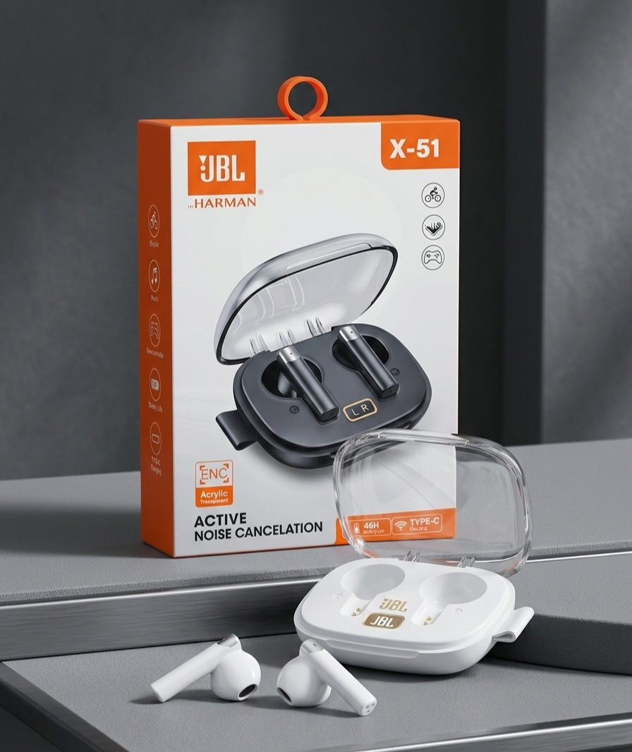 Écouteurs TWS JBL BY HARMAN X-51 (Style) – Boîtier Transparent & Réduction Active du Bruit (ANC)