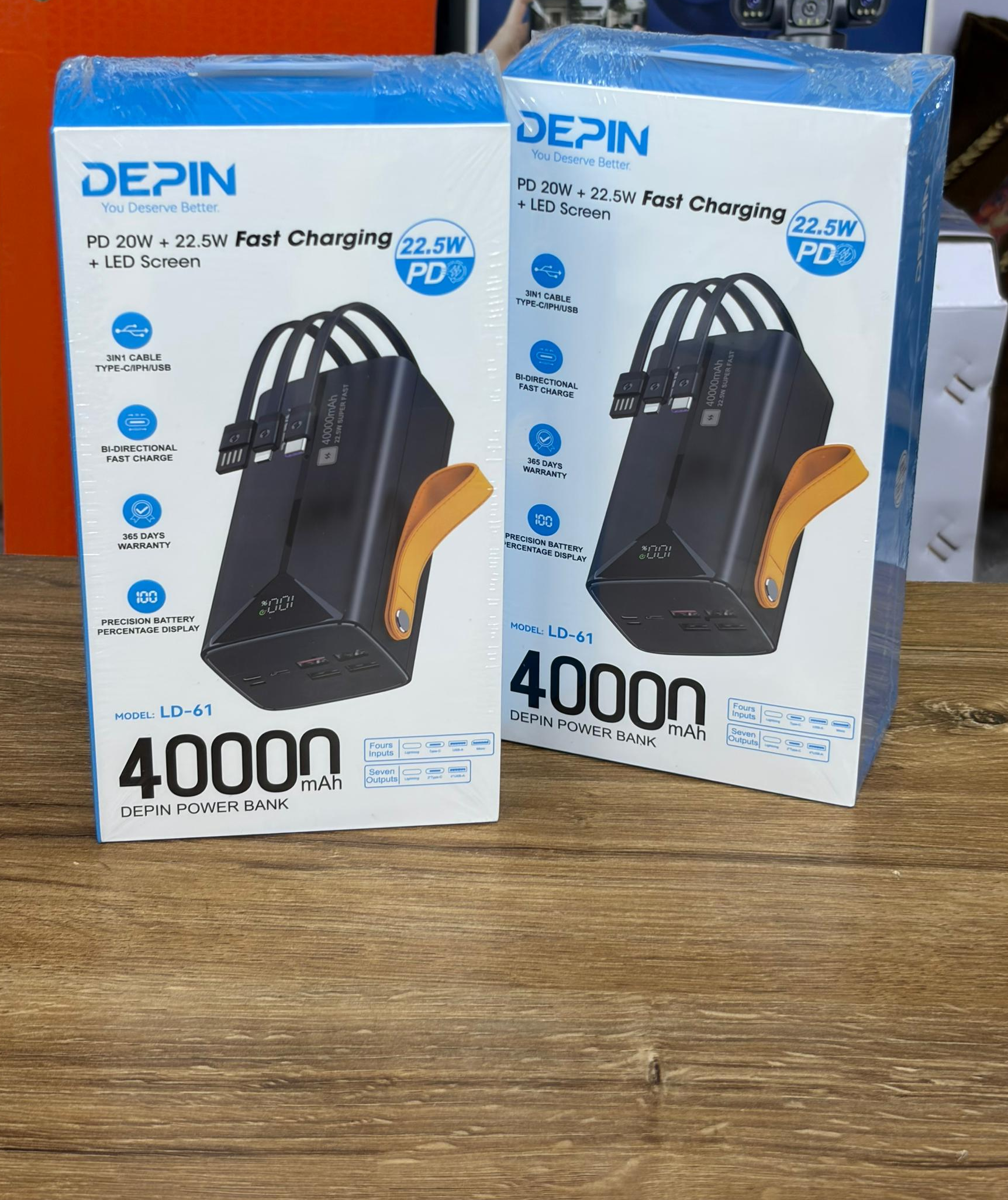 🔋 Power Bank 40000mAh PD 22.5W avec Câbles Intégrés – DEPIN (Modèle LD-61)