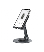 Support de bureau métal pour smartphone et tablette, réglable, base ronde avec ventouse, finition gr